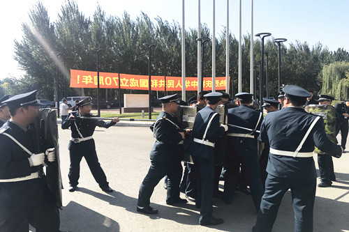 本次培訓(xùn)工作由集團(tuán)保安培訓(xùn)學(xué)校承擔(dān)。針對當(dāng)前迎接建國70周年大慶治安形勢和客戶單位安保工作要求,教官重點(diǎn)對保安員進(jìn)行了消防知識培訓(xùn)和防暴恐演練兩項培訓(xùn)。消防知識主要講解了消防四懂四會、消防器材使用、火災(zāi)隱患檢查排除、逃生自救等。防暴恐演練由教官導(dǎo)演,模擬暴恐現(xiàn)場,教授保安員如何及時發(fā)現(xiàn)、有效應(yīng)對暴恐突發(fā)事件,包括應(yīng)對方法、防暴隊型編排、防爆器械使用。使參訓(xùn)的全體保安員在有限的培訓(xùn)時間內(nèi),消防、防暴恐業(yè)務(wù)知識和實(shí)戰(zhàn)技能迅速得到加強(qiáng)和提升。