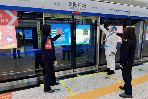 ? ?疫情防控方面,因全市出現(xiàn)多點散發(fā)新冠病毒病例,嚴格執(zhí)行消殺標準,對乘客頻繁接觸的車站安檢設備、自助售票設備、閘機等設施設備(部位)每2小時進行1次消殺;針對乘客易接觸的樓梯扶手、電扶梯扶手、公共衛(wèi)生間門把手及車站出入口、站臺、站廳、公共衛(wèi)生間等區(qū)域,每6小時進行1次消殺。同時,加強安檢員和安保員個人防護,上班期間全程佩戴口罩,及時進行個人清潔及辦公區(qū)域消毒處理。堅持做到“進站乘客及車站從業(yè)人員口罩佩戴率、測溫率100%,吉祥碼掃碼率100%,無智能手機乘客實名登記率100%”。全方位、全天候抓好疫情防控工作,全力確保乘客乘車安全。