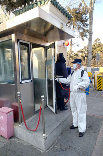 聯(lián)勤護(hù)衛(wèi)大隊(duì)駐長(zhǎng)春市公安局保安執(zhí)勤隊(duì)接到市局疫情防控工作部署和要求后,分隊(duì)長(zhǎng)竭國(guó)興立即召開(kāi)了執(zhí)勤隊(duì)保安員會(huì)議進(jìn)行貫徹落實(shí)。為了把疫情防控工作做好,他對(duì)分隊(duì)全體保安員提前進(jìn)行了消殺知識(shí)、體溫檢測(cè)等疫情防控知識(shí)和技能進(jìn)行了培訓(xùn)。他每天都帶領(lǐng)保安員們對(duì)各執(zhí)勤點(diǎn)消毒3次。在工作中,他指揮保安員們靠的不是命令,而是身體力行、親力親為,在基層執(zhí)勤崗點(diǎn),每天都能看到他背著近50斤的消毒器具進(jìn)行消殺的身影。為了加強(qiáng)防控,他帶領(lǐng)隊(duì)員們對(duì)市局的出入口進(jìn)行嚴(yán)防死守、不講情面,登記、測(cè)溫決不漏掉一人,即使市局領(lǐng)導(dǎo)出入也嚴(yán)格執(zhí)行疫情防控規(guī)定。當(dāng)執(zhí)勤隊(duì)口罩、消毒液短缺時(shí),他不計(jì)個(gè)人報(bào)酬,自掏腰包,駕車(chē)跑遍了長(zhǎng)春市各個(gè)藥店,排隊(duì)買(mǎi)到消毒液和醫(yī)用口罩,及時(shí)配發(fā)給每一名保安員。有力保障了保安員們的人身安全和疫情防控工作的順利進(jìn)行。