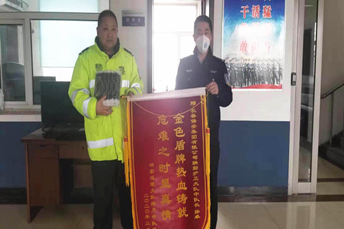 近日,綠園交警大隊(duì)皓月中隊(duì)中隊(duì)長張恩力向?qū)O卓贈(zèng)送了一面印有“金色盾牌熱血鑄就,危難之時(shí)顯真情”字樣的錦旗。這面錦旗凝聚著濃濃的警民之情,是對(duì)孫卓的感謝,更是對(duì)孫卓在關(guān)鍵時(shí)刻心懷大愛的贊美。