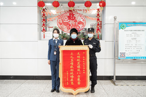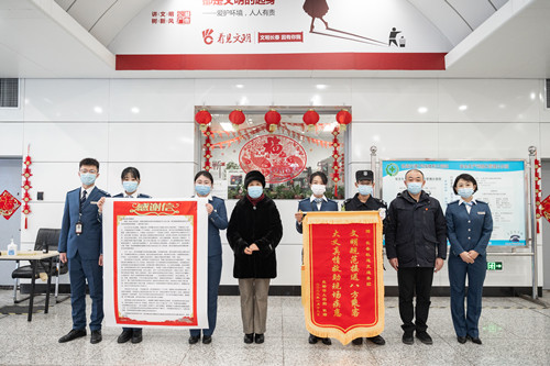 ? ?1月24日,一名乘客拿著錦旗和感謝信來(lái)到軌道交通1號(hào)線勝利公園站,對(duì)當(dāng)日救助其孫子的工作人員表示感謝,并連連稱贊工作人員給予的莫大幫助,對(duì)于當(dāng)時(shí)處于恐懼與無(wú)助中的祖孫兩人來(lái)說(shuō)是能驅(qū)散一切嚴(yán)寒的溫暖。