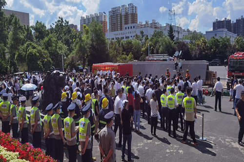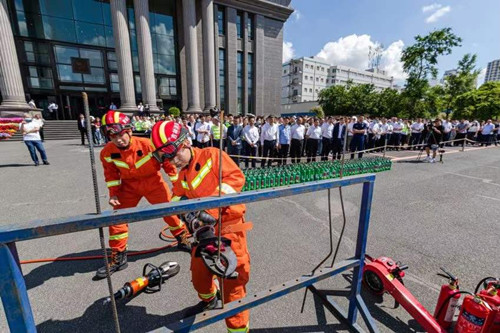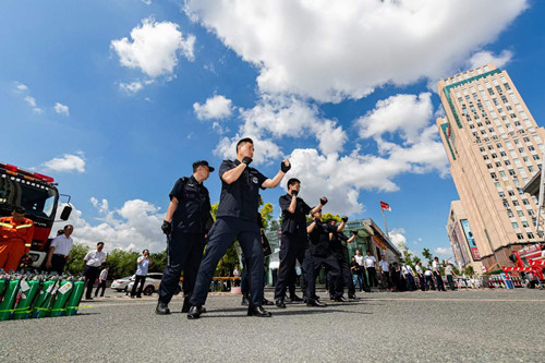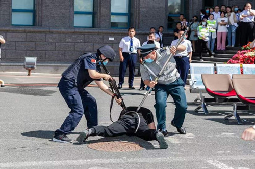 ? ?此次演練我公司派出了53名保安人員,參加了包括擒敵拳、盾牌術(shù)、火災(zāi)發(fā)生后的人員應(yīng)急疏散、明火撲救、防搶演習(xí)等項目的演練。