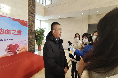 ? ? ? ? 在活動啟動儀式結(jié)束之后,參加活動的一行領(lǐng)導(dǎo)共同到采血車上看望、慰問了正在獻血的員工,向他們獻花表達敬意和感謝。之后,王鵬里書記,楊向榮總經(jīng)理分別接受了參加活動的省、市新聞媒體記者的集體采訪。