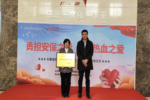 ? ? ? ? 在儀式上,長春市衛(wèi)健委副主任范金明代表長春市人民政府獻血工作領(lǐng)導(dǎo)小組辦公室為長春保安集團頒發(fā)“獻血特別突出貢獻單位”獎牌 。長春保安集團總經(jīng)理楊向榮上臺接受獎牌之后,宣布“勇?lián)脖V?zé),奉獻熱血之愛”集體獻血活動正式開始。全體獻血員工在集團行政辦公室工作人員的組織下,開始有序到??吭诩瘓F廣場上的長春市中心血站五輛采血車上進行獻血。