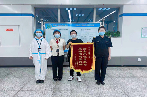? ?近日,長(zhǎng)春市軌道交通二號(hào)線長(zhǎng)青地鐵站C口安檢點(diǎn),一位乘客在過安檢時(shí)把隨身的一個(gè)男士背包遺落在了安檢點(diǎn),長(zhǎng)春保安集團(tuán)軌道交通大隊(duì)執(zhí)勤安檢員胡姍發(fā)現(xiàn)后第一時(shí)間上報(bào)安檢班長(zhǎng)夏春暉,夏春暉將乘客遺落背包交到車控室,隨后站長(zhǎng)聯(lián)系其他站尋找失主,失主王先生獲訊后與站方取得聯(lián)系,于當(dāng)晚來到長(zhǎng)青站取包,對(duì)安檢員拾金不昧的行為進(jìn)行了感謝,日前送來了錦旗,以表感激。