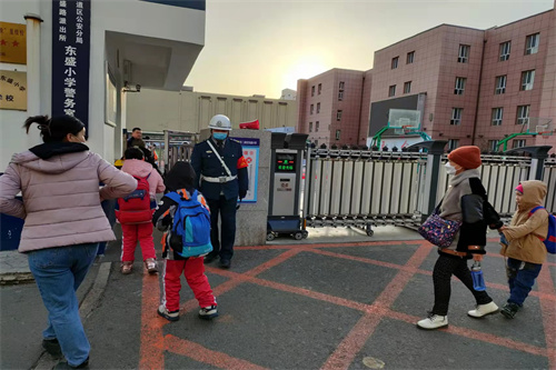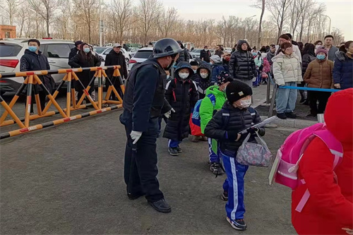 ? ?開學日,各校區(qū)迎來開學人流高峰,保安員們提前到崗,身著保安制服、穿戴鋼盔和防刺服、手持鋼叉,守護校園的第一道崗:測體溫、查健康碼、疏導交通、清理亂停車輛、引導護送年齡小的孩子入校等,始終以飽滿的精神狀態(tài)、嚴謹?shù)墓ぷ鲬B(tài)度堅守崗位,熱情服務,切實做好開學安保工作,讓家長放心,讓師生安心。