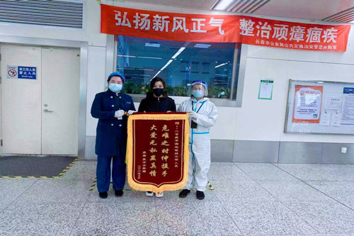 ? ?2021年4月30日16時(shí)40分,長春軌道交通二號線平陽街站,一名女乘客從吉林大路站上車,在車上暈倒,但意識清醒只是不能走路。因乘客是在平陽街站下車,車站行值通知站臺站務(wù)員,與長春保安集團(tuán)軌道交通大隊(duì)在此駐勤的保安員們從雙豐方向10號屏蔽門把這名女乘客扶下車。乘客下車后,在座椅上休息。車站日站、值站與長春保安集團(tuán)軌道交通大隊(duì)在此駐勤的安檢班長韓靖宇在樓下陪護(hù),幫忙聯(lián)系家人。家屬到來后,保安員和值站用輪椅將乘客送至出站口。2021年5月9日,家屬專門送來一面錦旗,向當(dāng)天為發(fā)病女乘客提供過幫助的站務(wù)人員、安檢員、保安員表示衷心感謝。