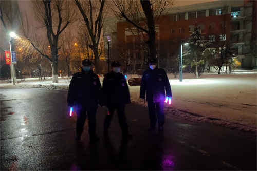 ? ?為確保靜態(tài)管理期間校園的安全穩(wěn)定,保證師生的工作、生活有序進行,保安隊在保衛(wèi)處的帶領下做到一手抓疫情防控,一手抓校園安全。為進一步查找隱患,堵塞漏洞,保衛(wèi)處成立了巡查隊,組織開展動態(tài)化巡邏防控和靜態(tài)化蹲點值守等工作。從清晨到夜間,摩托小分隊日夜不息穿梭在校園主干道,查找安全隱患、消防隱患,排查樓體墻體脫落情況;步行巡查小分隊則值守各教學樓、學生公寓,嚴密排查校園靜態(tài)管理期間存在的防疫漏洞,及時疏導解決發(fā)現(xiàn)問題,成功規(guī)避疫情防控潛在隱患。