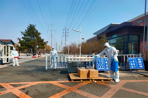 ? ?校園大門是人員進出的第一道關卡,是疫情防控的最前線。3月11日開始,學校實行封閉式管理,駐校保安隊積極配合保衛(wèi)處,嚴格按照“五必”防疫流程,對進出校門的后勤保障、防控、應急人員和車輛把關,審批、戴口罩、掃碼、測溫、登記五個環(huán)節(jié)缺一不可,同時對進出車輛、物資進行消殺,做到“嚴防死守”,絕不讓新冠病毒沖破學校第一道封鎖線。截止目前,校門保安員累計完成掃碼、測溫200余人次,車輛消殺450余臺次,物品、藥品及餐箱消殺登記150余次。
