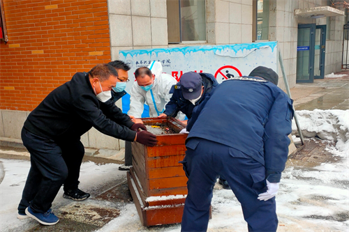 ? ?盡管休息時間短暫,可任勞任怨的保安員們仍利用短暫的休息時間幫助其他更需要幫助的人。搬運物資,他們不遺余力。消殺后的防疫物資、生活物資,他們一次次彎下腰,扛起來,從不言累、從不怨苦。有的保安員在搬運過程中手受傷,鮮血直流,都是回辦公室簡單包扎處理后繼續(xù)回到搬運現(xiàn)場。三月中旬的幾場大雪,往往一夜間,路面積雪難以出行,早起巡邏的保衛(wèi)人,為了讓物資車輛順利通行,用鐵鍬、掃把等簡陋的清雪工具,用保衛(wèi)處僅存的融雪劑,將校門內外道路清理出來。