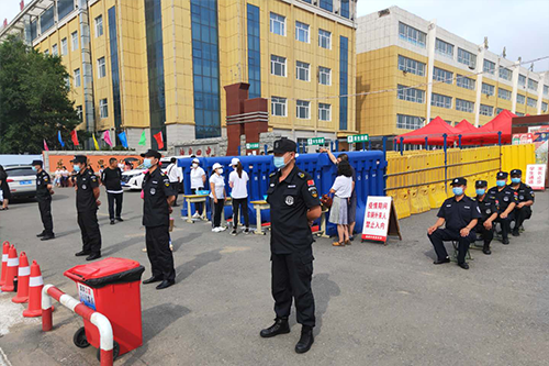 ??在執(zhí)行護(hù)考勤務(wù)的過程中,參加護(hù)考的各分公司嚴(yán)格貫徹落實集團(tuán)護(hù)考工作的安排部署,提前與考場學(xué)校進(jìn)行工作聯(lián)系對接、提前做好勤務(wù)方案、提前抽調(diào)人員、提前開會部署,確保工作萬無一失。在護(hù)考勤務(wù)開始后,參勤分公司經(jīng)理親自到崗指揮、調(diào)度,中隊長到崗按考場分區(qū)帶隊執(zhí)行勤務(wù)工作,分管副總到崗檢查指導(dǎo)勤務(wù)工作。長春護(hù)考勤務(wù)工作主要任務(wù)是配合考場學(xué)校對考場進(jìn)出人員進(jìn)行安檢、測溫,維持安全秩序。在執(zhí)行勤務(wù)的過程中,面對高溫酷暑,全體執(zhí)勤人員揮汗如雨,但始終認(rèn)真工作、文明執(zhí)勤、一絲不茍,嚴(yán)格執(zhí)行考場制度,共為進(jìn)出考場考生及工作人員安檢5.5萬人次,測溫5萬人次,為考生提供幫助1000人次,最終圓滿完成了各項安保工作,得到一致好評。