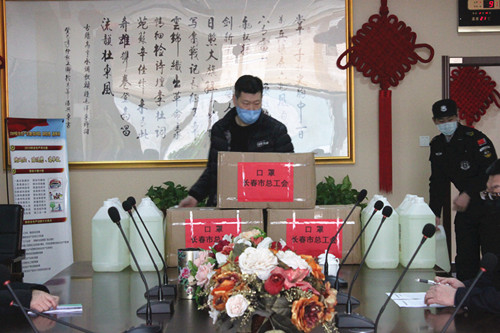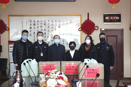 2020年3月9日上午,長春市總工會常務(wù)副主席朱琪、財貿(mào)輕紡工委主任葛麗來到集團,慰問奮戰(zhàn)在疫情防控一線的保安員,向他們贈送口罩5000只,消毒液10桶。集團總經(jīng)理楊向榮,副總經(jīng)理付愛民、袁樹明對一行領(lǐng)導(dǎo)進行了熱情接待。