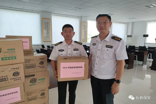 ? ?員工們收到慰問(wèn)品后都非常高興和激動(dòng),一致表示,長(zhǎng)春市總工會(huì)開(kāi)展的這次送清涼活動(dòng)非常好,帶來(lái)了“娘家”對(duì)員工們的關(guān)心與關(guān)愛(ài),這將極大激發(fā)員工們的工作熱情和干勁,同時(shí)也對(duì)工會(huì)組織更加信任、更加依賴。他們將把工會(huì)的這份關(guān)心與關(guān)愛(ài)化做強(qiáng)大的工作動(dòng)力,繼續(xù)全力保安好客戶單位安全,協(xié)助公安機(jī)關(guān)維護(hù)好社會(huì)治安,做好維穩(wěn)處突,維護(hù)社會(huì)和諧、穩(wěn)定,為迎接黨的“二十大”勝利召開(kāi),貢獻(xiàn)長(zhǎng)春保安智慧、力量!