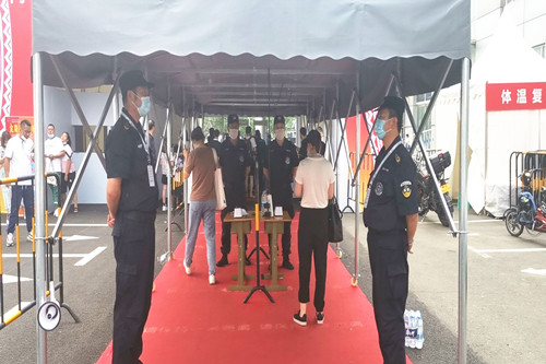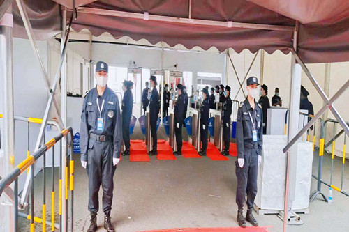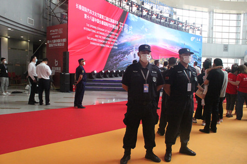 ? ?本屆長春汽博會布局采用“主會場+分會場”形式,主會場長春國際會展中心的展覽面積達20萬平方米,保持歷屆最高記錄。主會場分設(shè)9個室內(nèi)場館和4個室外展區(qū)。在會展期間,將有來自世界各地的廠商和游客進入展會現(xiàn)場。在新冠疫情的防控進入常態(tài)化的當(dāng)下,如此大體量的會展安保任務(wù),對我們的安保執(zhí)勤人員無疑是一個巨大的考驗。面對艱巨的工作任務(wù),現(xiàn)場總指揮岳福成統(tǒng)籌安排,早部署、早落實。按照執(zhí)勤方案,分別從南關(guān)分公司、二道分公司、站前分公司、寬城分公司、聯(lián)勤大隊、軌道交通大隊、朝陽分公司抽調(diào)了280名業(yè)務(wù)素質(zhì)高、身體素質(zhì)好、有經(jīng)驗的保安人員組成展會安保執(zhí)勤隊伍。同時安排各分公司帶隊干部對抽調(diào)的保安人員集中進行崗前培訓(xùn),宣傳貫徹市公安局和組委會的安保執(zhí)勤任務(wù)以及疫情防控要求。從7月4日開始提前派員進駐展會現(xiàn)場,進行布崗、對安檢設(shè)備進行調(diào)試,確保安保及疫情防控措施落實到位,全力保障高質(zhì)量地完成此次安保任務(wù)。