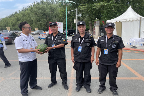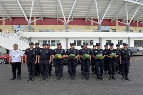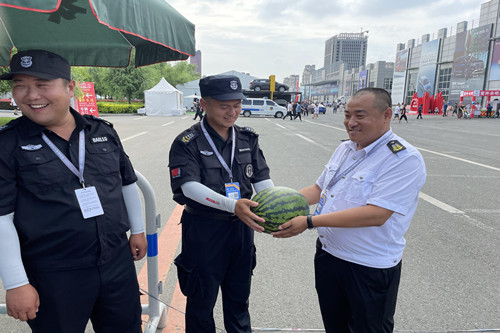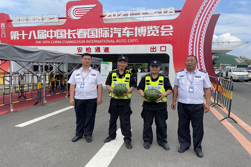 ? ?楊向榮總經(jīng)理深切掛念著在一線執(zhí)勤的全體人員,7月13日指派人力資源總監(jiān)張旭帶隊前往執(zhí)勤現(xiàn)場進行慰問,為執(zhí)勤人員送出了消暑水果,使現(xiàn)場執(zhí)勤人員在炎炎烈日下感受到了公司的關(guān)懷,極大地鼓舞了全體執(zhí)勤人員的斗志。紛紛表示將抖擻精神,繼續(xù)以飽滿地工作熱情,昂揚向上的工作態(tài)度,凝心聚力,堅持到最后,全力協(xié)助長春公安維護本屆汽博會的安全秩序,為汽博會保駕護航。