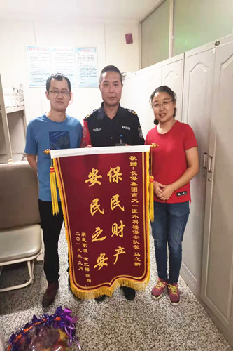 9月9日,丟失手機的那名女子黃某特制作了一面印有“保民財產(chǎn) 安民之安”的錦旗來到外科樓,贈送給班長馬立新,對他及當晚參與抓獲犯罪嫌疑人的保安員們表示衷心的感謝。