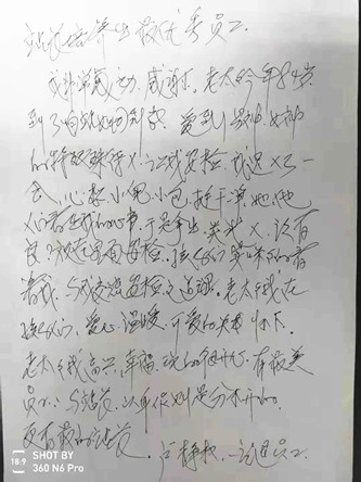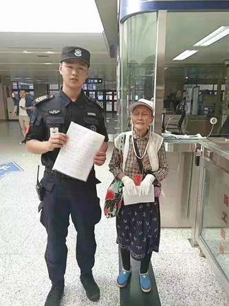 事后,盧靜權老人再次來到長春西站安檢組,將一封手寫的感謝信交給西站安檢班長邰宇航,表揚了熱心為她服務的安檢組全體安檢人員,并與大家合影留念。