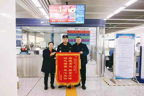 2019年11月19日上午10時(shí)許,一名乘客在長春軌道交通2號線景陽廣場站A口安檢點(diǎn)遺失了一個金手鐲,被安檢員劉宇航撿到。他立即將情況向安檢班長報(bào)告,他們一起將手鐲交給了車站領(lǐng)導(dǎo)。經(jīng)過兩天的查找,駐站民警通過人臉識別系統(tǒng),最終找到了金手鐲的主人,并及時(shí)將失物返還給了她。得知事情的經(jīng)過后,這名女士被劉宇航這種拾金不昧的精神深深感動。事后,她專門來到車站向劉宇航贈送了一面錦旗,表達(dá)自己對他的敬意和感謝。