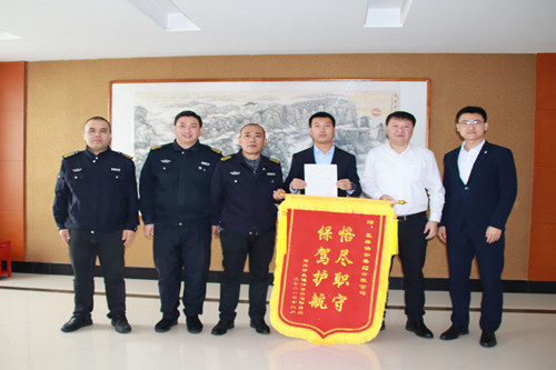 ? ?12月16日上午,國(guó)家開發(fā)銀行吉林分行辦公室行政處高級(jí)經(jīng)理牛欣然、辦公室安全保衛(wèi)處干事梁春野在長(zhǎng)春保安集團(tuán)駐國(guó)家開發(fā)銀行吉林分行項(xiàng)目經(jīng)理趙鑫的陪同下,將一面寫有“恪盡職守,保駕護(hù)航”的錦旗及一封感謝信送至長(zhǎng)春保安集團(tuán),對(duì)長(zhǎng)春保安集團(tuán)金融大隊(duì)全體駐勤保安員優(yōu)質(zhì)高效的安保工作給予高度贊譽(yù)和充分肯定。長(zhǎng)春保安集團(tuán)總經(jīng)理助理、金融大隊(duì)分管領(lǐng)導(dǎo)、南關(guān)分公司經(jīng)理閆俊峰,金融大隊(duì)大隊(duì)長(zhǎng)張琳、中隊(duì)長(zhǎng)楊光熱情接待了一行領(lǐng)導(dǎo)。