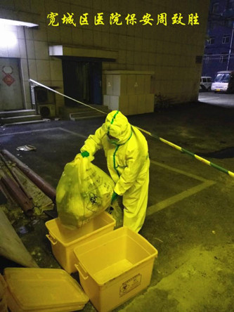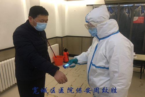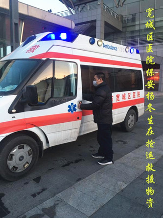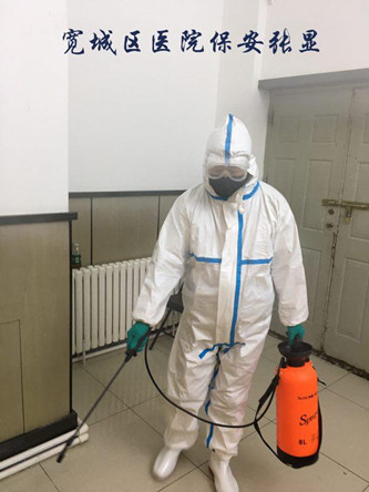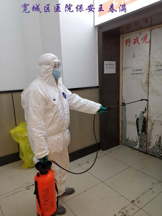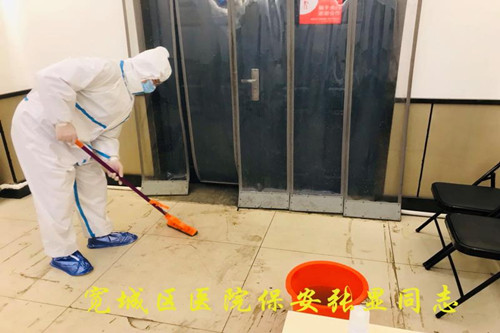 寬城區(qū)醫(yī)院保安執(zhí)勤隊全體保安員年齡平均為50歲以上。但這支大齡保安員組成的保安隊伍,在寬城區(qū)醫(yī)院疫情防控工作中出色發(fā)揮了作用。自新冠肺炎疫情發(fā)生以來,中隊長溫洪斌就嚴格按照醫(yī)院的要求,提前對執(zhí)勤隊配合醫(yī)院做好疫情防控工作進行了安排和部署,并堅持每天都到崗上帶領(lǐng)保安員們做好相關(guān)工作。在疫情防控工作中,保安員們嚴格把好醫(yī)院大門,筑牢醫(yī)院疫情防控第一道關(guān)口,嚴格按照醫(yī)院的要求,對出入人員進行詳細登記和認真測溫,不放過一個可疑人員。在對醫(yī)院醫(yī)療環(huán)境進行消殺的過程中,全面到位、不留死角。在協(xié)助醫(yī)護人員對發(fā)熱病人進行隔離看護的過程中,不懼危險、全力協(xié)同。在搬運醫(yī)療物資、醫(yī)療垃圾的過程中,不怕臟累,盡心盡力。在此期間,全體保安員幾乎承擔了醫(yī)護工作以外的一切力所能及的疫情防控任務(wù)。面對這種高強度工作,全體保安員們沒有一個人退縮、推諉、不服從指揮,沒有一個人請假,全部在崗在位、隨叫隨到、任勞任怨,使醫(yī)院領(lǐng)導(dǎo)和全體醫(yī)護人員深受感動。