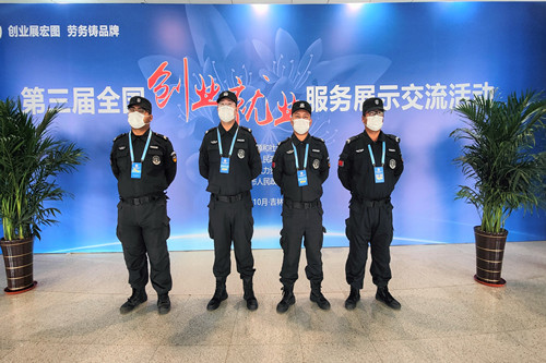 ? ?本次活動,是2021年全國“雙創(chuàng)”活動周的重要組成部分,也是縱深推進大眾創(chuàng)業(yè)萬眾創(chuàng)新的重要舉措。活動以“創(chuàng)業(yè)展宏圖 勞務(wù)鑄品牌”為主題,旨在搭建成果展示、交流研討、資源對接平臺,分為主題展示和專項活動兩大部分。主題展示包括城市創(chuàng)業(yè)和勞務(wù)品牌兩大展區(qū),92個城市和146個勞務(wù)品牌參展,展覽面積1.8萬平方米,展示項目238個,集中展示各地創(chuàng)業(yè)就業(yè)工作和勞務(wù)品牌建設(shè)經(jīng)驗亮點、特色成效。在受疫情影響的情況下要確保此次活動安全保衛(wèi)工作萬無一失,“零差錯、零漏洞、零失誤”就成了長春保安集團必須嚴防死守的安全底線。為此,長春保安集團總經(jīng)理高度重視,親自審定安保勤務(wù)方案,安排部署執(zhí)勤工作,成立現(xiàn)場安全保衛(wèi)分指揮部,由總經(jīng)理助理、二道分公司經(jīng)理、大型執(zhí)勤活動指揮調(diào)度中心主任岳福成任總指揮,二道分公司中隊長李豐任現(xiàn)場協(xié)調(diào)員,二道分公司、南關(guān)分公司、聯(lián)勤護衛(wèi)大隊參勤中隊長為指揮部成員,負責(zé)指揮調(diào)度現(xiàn)場勤務(wù)工作。