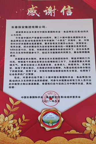 ? ?近日,長(zhǎng)春農(nóng)業(yè)博覽園安保部部長(zhǎng)陳揚(yáng)蒞臨長(zhǎng)春保安集團(tuán)贈(zèng)送榮譽(yù)證書和感謝信,對(duì)長(zhǎng)春保安集團(tuán)在第二十屆長(zhǎng)春國(guó)際農(nóng)業(yè)?食品博覽(交易)會(huì)安保工作中全力以赴、履職盡責(zé)、積極作為,保障農(nóng)博會(huì)成功舉辦發(fā)揮的重要作用給予高度贊揚(yáng)和衷心感謝。