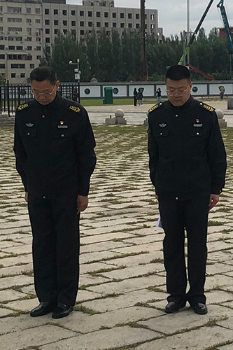 ??莊嚴(yán)默哀,緬懷革命先烈。“九·一八”,我們向先烈致敬!歲月無(wú)疆,英雄不朽。在凄厲的防空警報(bào)響徹在長(zhǎng)春市上空時(shí),保安集團(tuán)全體員工進(jìn)行默哀,向革命先烈、為抗日戰(zhàn)爭(zhēng)做出犧牲和貢獻(xiàn)的無(wú)數(shù)仁人志士、在戰(zhàn)爭(zhēng)中不幸罹難的全體同胞們默哀三分鐘,致以最崇高的敬意。