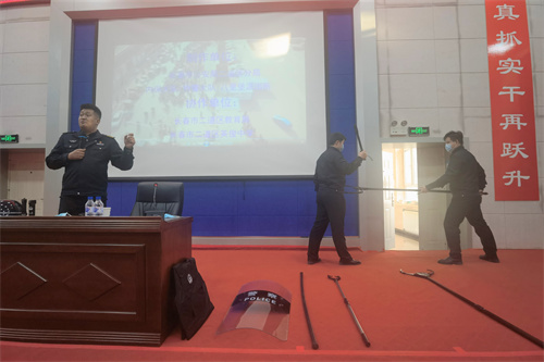 ? ?在實戰(zhàn)演練中,圍繞防暴盾牌、防暴鋼叉、橡膠棍等防暴器械的使用和防暴技能的訓(xùn)練等方面,向參訓(xùn)保安員講解示范如何有效地組合運用防暴器械,并組織參訓(xùn)保安員進行了實戰(zhàn)演練,使保安員們在遇到突發(fā)事件時,能規(guī)范使用器械,維護好校園安全。