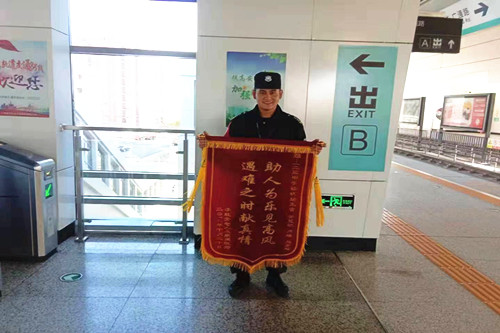 事后,家屬制作了一面印有“助人為樂見高風(fēng) 遇難之時獻真情”的錦旗送到軌道交通8號線123中學(xué)站,對安檢員劉影、安保員趙彥超表示感謝。