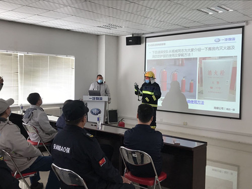 ? 2020年4月24日,長春保安集團綠園保安分公司駐一汽物流陸順公司保安執(zhí)勤隊全體保安員參加了物流園區(qū)組織的消防知識培訓和春季消防演練活動。