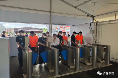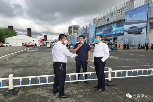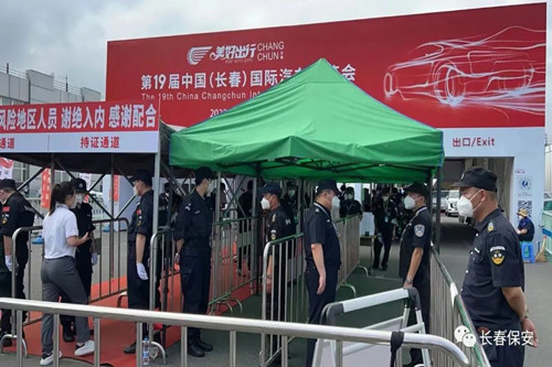 ? ?本屆展會總面積達20萬平方米,共計155個品牌、128戶企業(yè)參展,入場總人數(shù)達61.8萬人次。遠超去年同期。長春保安集團負責展會4個觀眾出入口、9個展館54個防疫出入口及外圍圍墻的安全秩序維護工作。根據長春公安要求,在既要做好安保勤務工作,同時又要做好疫情防控工作的雙重壓力下,全體執(zhí)勤人員在集團董事長、總經理和現(xiàn)場保安指揮部的領導下,發(fā)揮長春保安集團的優(yōu)良傳統(tǒng),恪盡職守、攻堅克難、履職盡責、連續(xù)作戰(zhàn),用辛勤的汗水和努力,為保障汽博會安全作出了應有貢獻。
