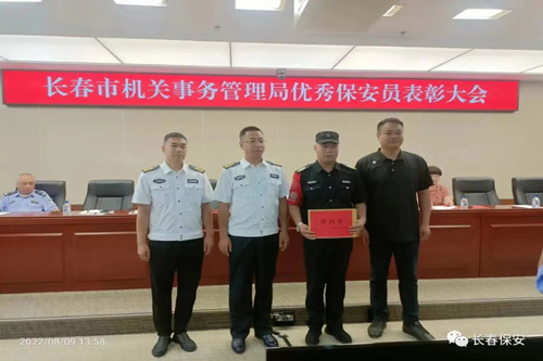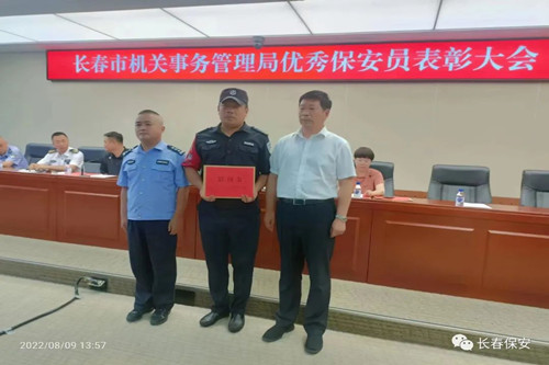 ? ?2022年8月9日,長春市機關(guān)事務(wù)管理局保衛(wèi)處召開工作表彰大會。長春市機關(guān)事務(wù)管理局副局長李輝、保衛(wèi)處處長王鐵,長春保安集團(tuán)有限公司總經(jīng)理公丕春、總經(jīng)理助理兼朝陽分公司經(jīng)理田紅功、駐勤中隊長孫占祥出席了大會,市直機關(guān)保衛(wèi)處(安全生產(chǎn)監(jiān)督管理處)各集中辦公區(qū)負(fù)責(zé)人、干部職工代表,保安集團(tuán)駐勤保安員代表參加了大會。