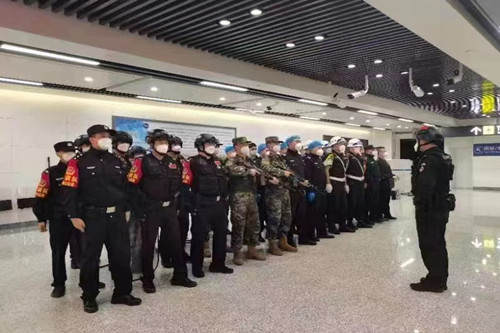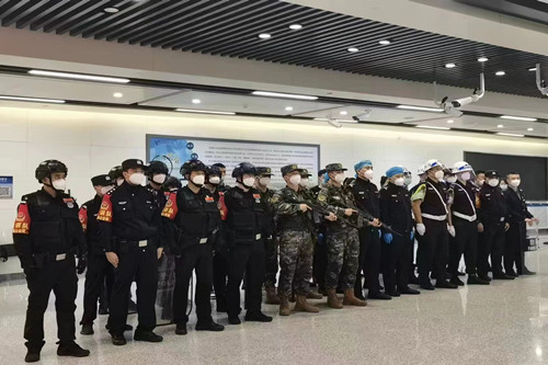 ? 2022年9月23日下午,長(zhǎng)春保安集團(tuán)九臺(tái)分公司駐龍嘉機(jī)場(chǎng)防暴檢測(cè)中隊(duì)聯(lián)合機(jī)場(chǎng)特警、武警、城開、鐵路多部門進(jìn)行了防暴恐突發(fā)事件應(yīng)急演練活動(dòng)。駐勤保安員參加了演練。