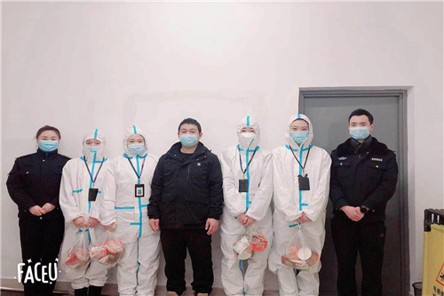 ??在慰問期間,各慰問小組領(lǐng)導(dǎo)們與保安員們進(jìn)行了交談,轉(zhuǎn)達(dá)了集團(tuán)對他們的親切問候,悉心詢問了他們當(dāng)前的工作及生活情況,存在的困難及需求,認(rèn)真了解抗疫工作各項(xiàng)重點(diǎn)任務(wù)開展落實(shí)情況,對他們一年來的工作給予了肯定,表揚(yáng)了他們在疫情防控期間不分晝夜,堅(jiān)守崗位,辛勤付出。其中由于范家屯疫情爆發(fā)尤為嚴(yán)重,導(dǎo)致當(dāng)?shù)匕脖Aα坑葹椴蛔?。為完成疫情防控及日常安保工作,臨時從汽車廠抽調(diào)近70%的保安員前往范家屯支援當(dāng)?shù)匕脖9ぷ?。絕大部分保安員受疫情影響,有家不能回,吃住在一線。在集團(tuán)得知這一情況后,立即為身處疫區(qū)的保安員們送去方便面、茶蛋、牛奶等慰問品。受到慰問的保安員們深受感動,紛紛表示,在全市上下齊心協(xié)力共抗疫情的關(guān)鍵時期,集團(tuán)能夠時刻想著身處抗疫一線的保安員,并送來慰問品,使他們備受鼓舞,信心倍增。他們將繼續(xù)堅(jiān)守抗疫一線工作崗位,認(rèn)真做好消殺、測溫、安檢、登記等疫情防控工作,嚴(yán)格落實(shí)安全隱患排查,嚴(yán)防各類安全事故發(fā)生,確保駐勤單位安全。特別是馬上臨近春節(jié),對待疫情防控工作更加不能松懈,將懷揣感恩之心,以認(rèn)真負(fù)責(zé)的態(tài)度履行好崗位職責(zé),不辜負(fù)集團(tuán)、客戶的信任和重托。