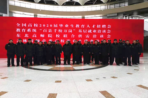 2019年11月30日,由東北師范大學主辦的全國高校2020屆畢業(yè)生教育人才招聘會在長春國際會展中心舉行。站前分公司出動40名保安員承擔了本次大型招聘會的安保勤務工作,配合公安民警及東北師范大學工作人員維護招聘會現(xiàn)場安全秩序,確保招聘會安全、有序進行。40名保安員在中隊長于海軍帶領下,準時上崗、克服困難、認真履職,圓滿完成了本次安保勤務,得到好評。