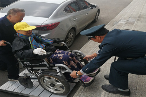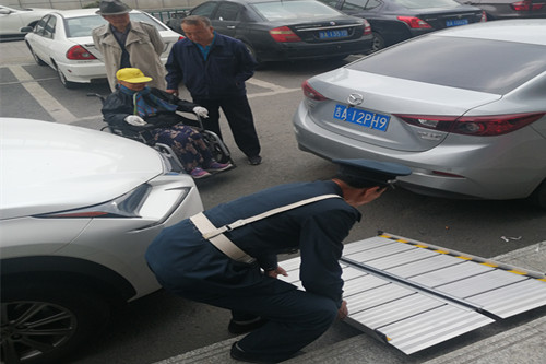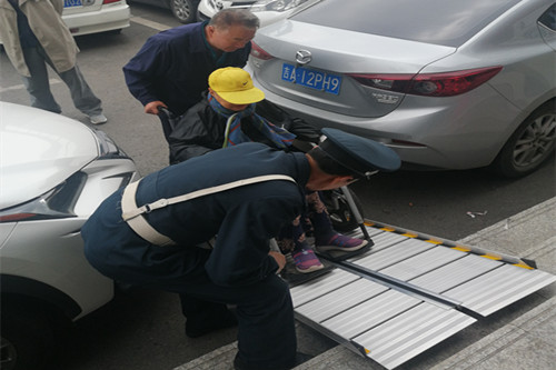 最近,金融大隊駐中國銀行保安員郭殿君在一次例行巡邏時,發(fā)現(xiàn)一位老大爺用輪椅推著行動不便的老大娘吃力地往銀行走來。他上前詢問,得知他們是來銀行辦理業(yè)務(wù)之后,為了幫助他們順利通過銀行前高高的四層臺階,他立即找來鋁合金斜坡板,與老大爺一起把大娘推了上來。這感人的一幕,恰巧被銀行行長發(fā)現(xiàn)并用手機(jī)拍攝了下來,并發(fā)到了銀行工作群中,高度贊揚了郭殿君助人為樂的行為。